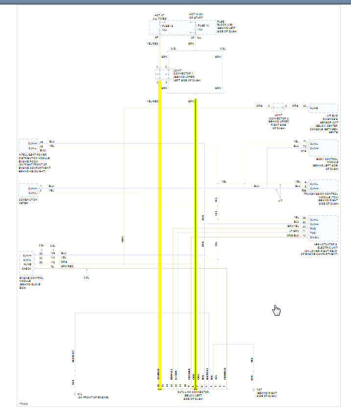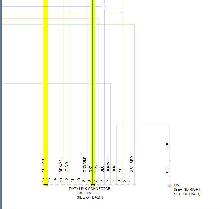 Sounds like we have a couple things going on. They could be related but we need to start with trying to find out why we have no power to the DLC. We need to try and get some codes to find out what the issue is with not starting so let's check for power on the two wires highlighted to find out if you have power going to the DLC.