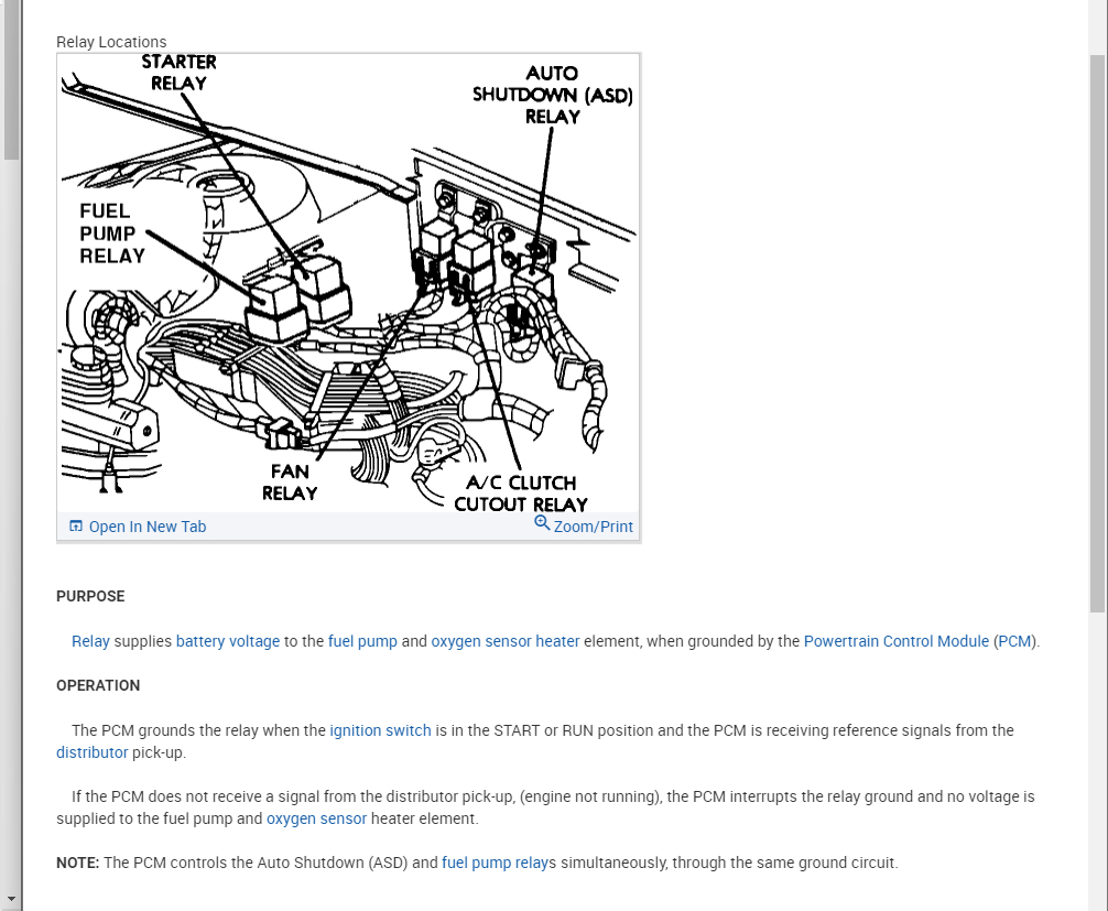 I would like to try the relay first before I buy a new pump but I don't know where it is located. I have five wireing harnesses plugged in to black connectors on the drivers side of the engine compartment (two on the strut hump and three on the fender) do you know which one it would be. The relay the guy at O'Reilly's showed me doesn't match what I am seeing under the hood. I would go to the library to look at the Chilton's but I really don't want to walk that far.