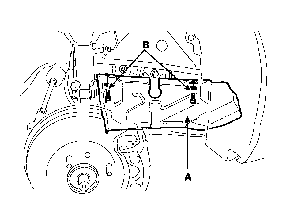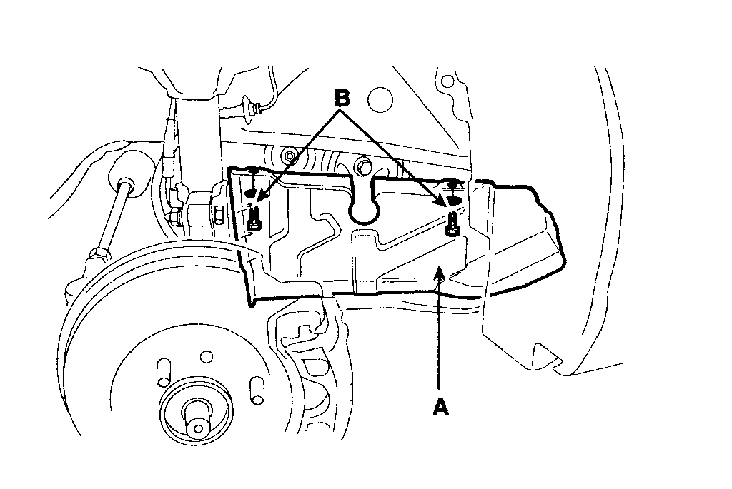 13. Remove the 4 bolts(B) and timing belt lower cover(A).