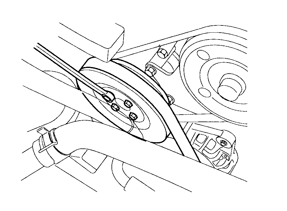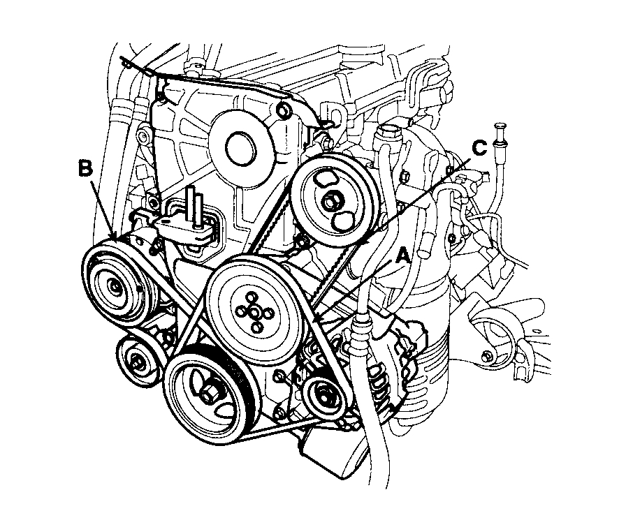 2. Inspect the tensioner pulley and the idler pulley for easy and smooth rotation and check for play or noise. Replace as necessary.