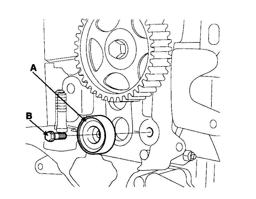 2) After checking the alignment between each sprocket and each timing belt tooth, tighten the mounting bolt (A) and (B) one by one.