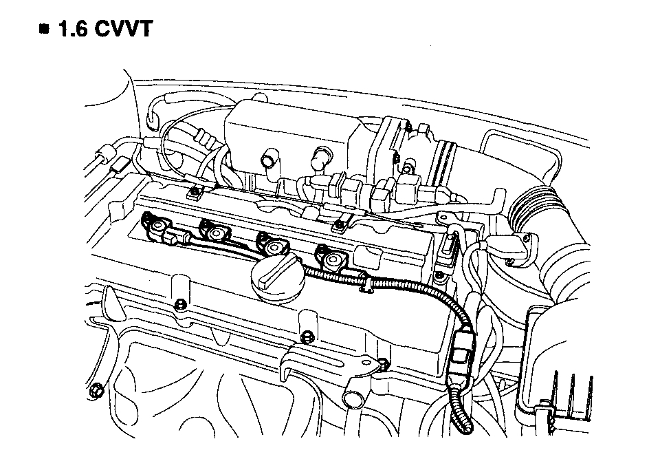 3) Install the PCV(Positive Crankcase Ventilation) hose(A) and breather hose(B) to the cylinder head cover.