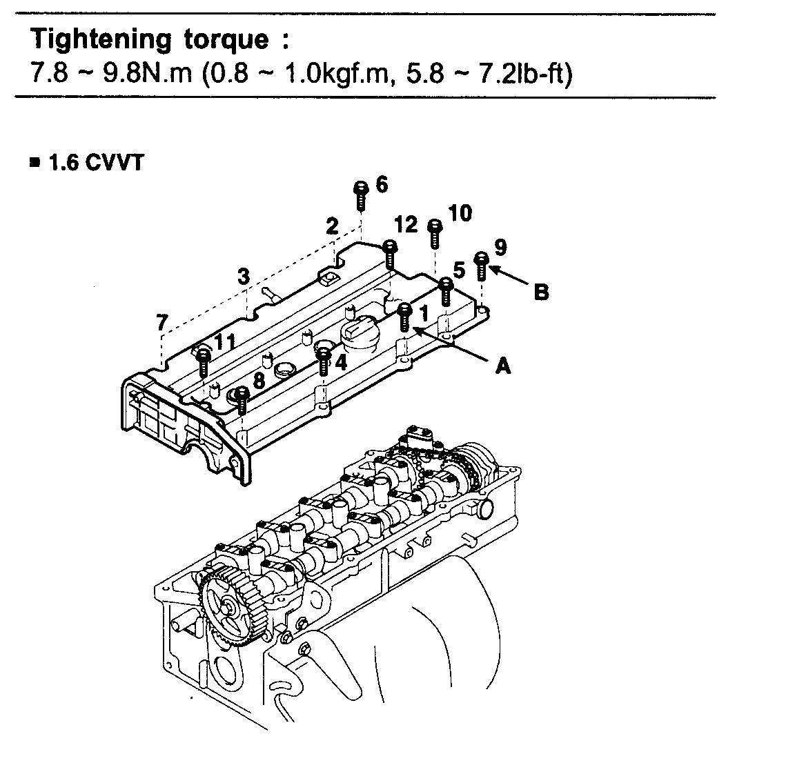 Tightening torque: 7.8 - 11.8N.m (0.8 - 1.2kgf.m, 5.8 - 8.7lb-ft)