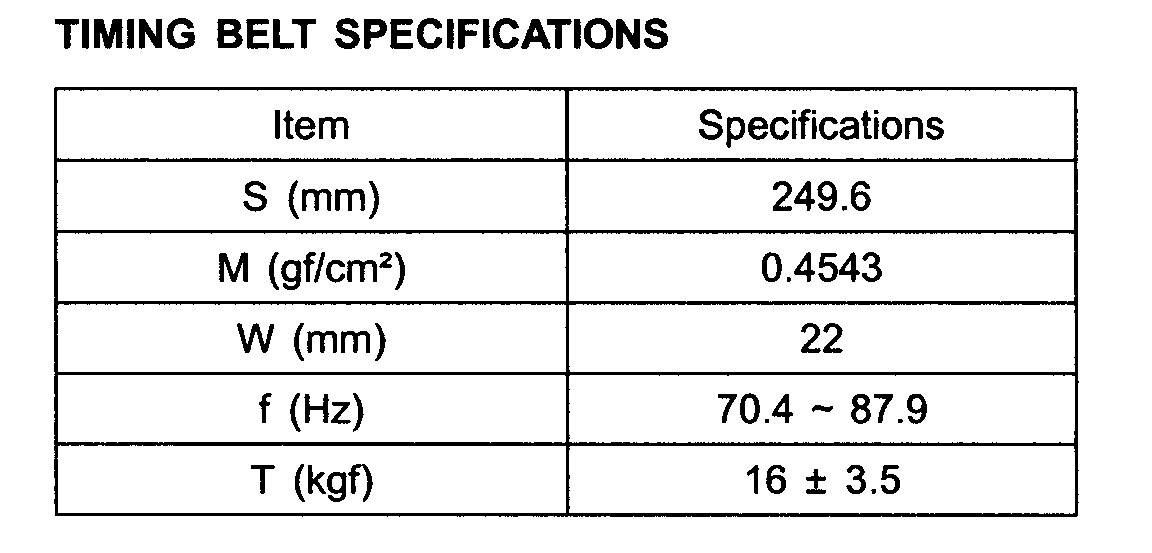4) Timing belt tension measuring procedure (by a sonic tension gage)