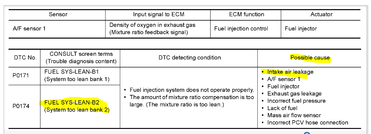 Is the leak before or after the MAF? Also, the code deals with a lean fuel mixture on bank 2 of the engine. By any chance, is there an exhaust leak at the exhaust manifold? Also, has the vehicle been difficult to start?