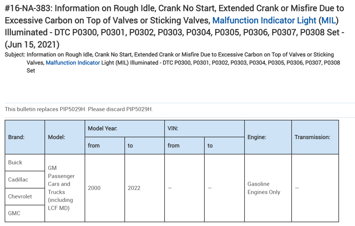 Okay, let us know if that clears up the random misfire code. There are some issues with carbon build up on intake valves for these engines as well, there is a Technical Service Bulletin on it. If its still setting the code you can try some of the ACDelco Top Engine Cleaner (3rd diagram). That GM recommends for carbon issues. Adding some fuel system cleaner can help as well.