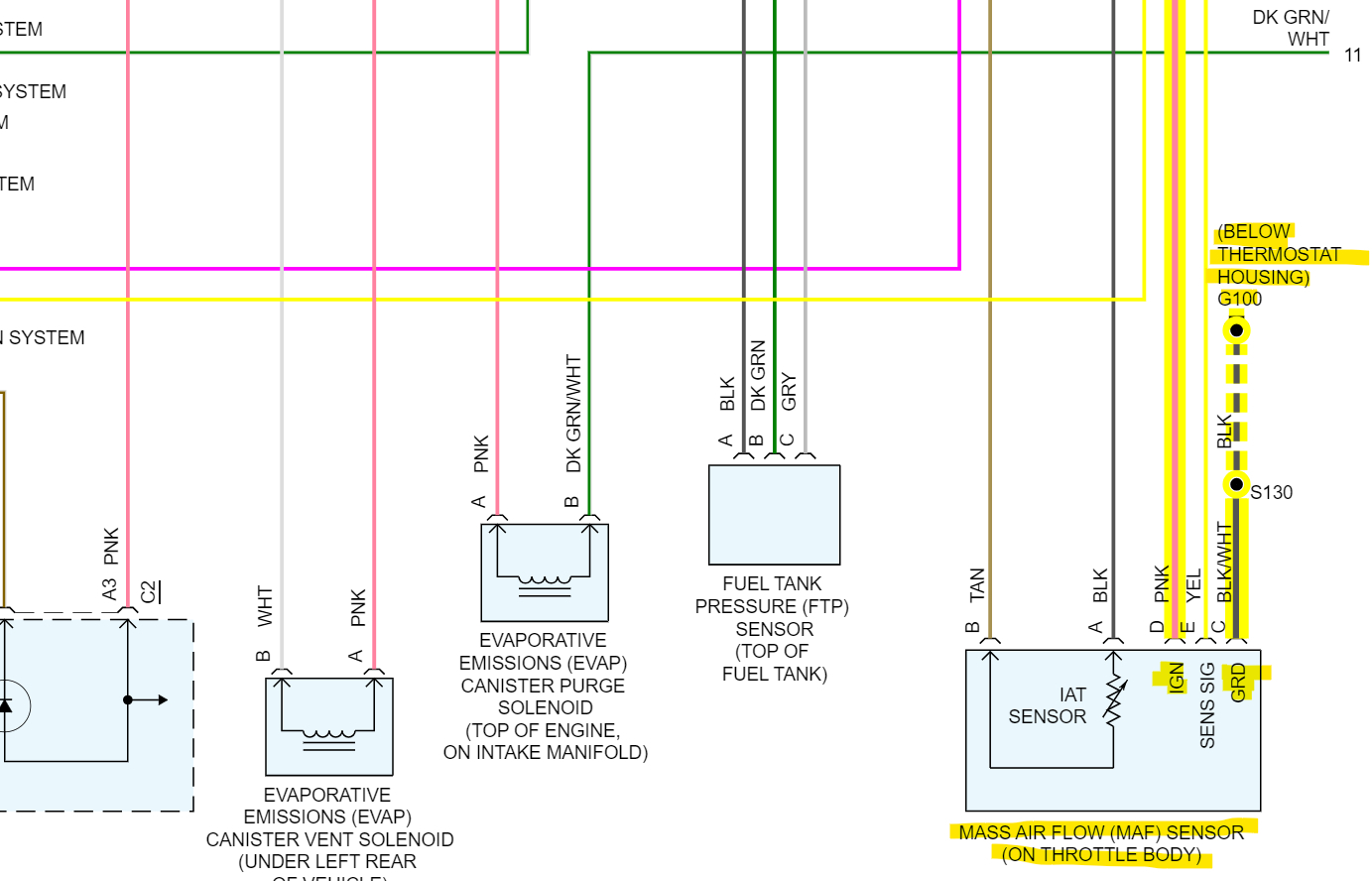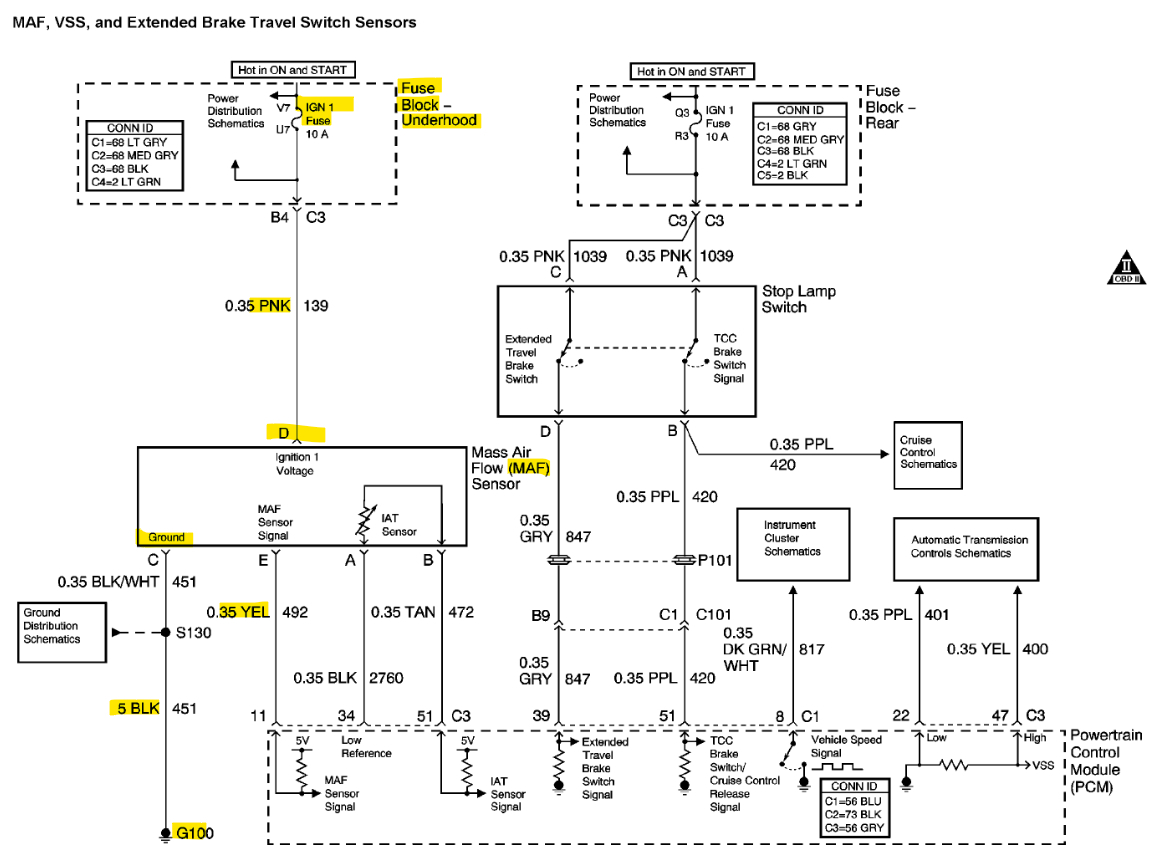 Here's the MAF wiring diagrams if you want to check the voltage feed and Ground. There should be 12v on the pink wire with the Key On.