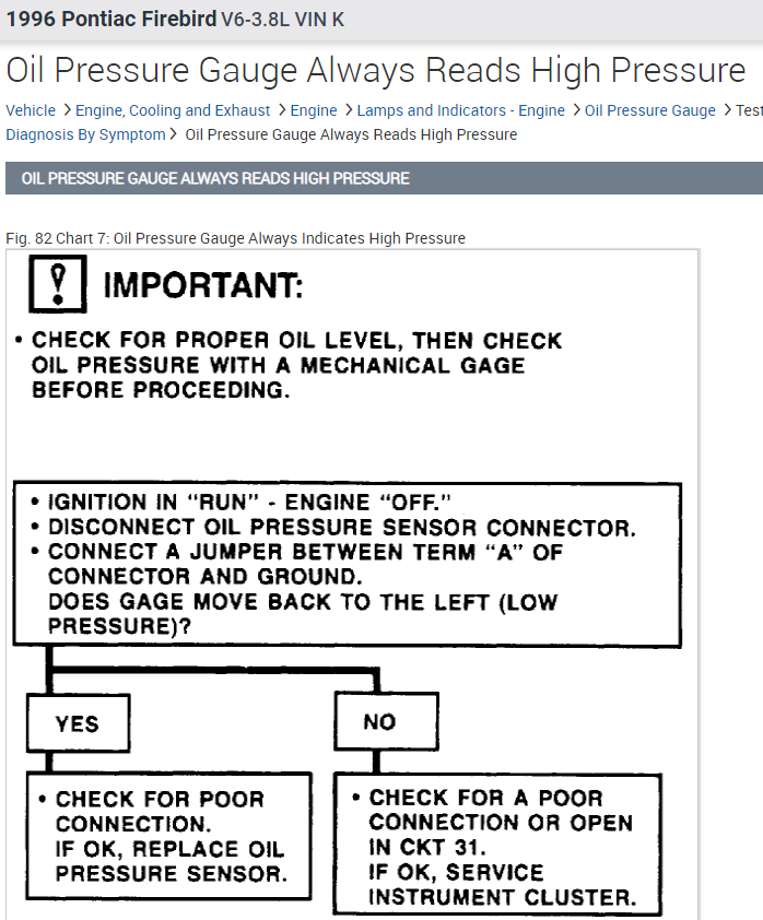 Recently, as I was accelerating to enter the highway, I saw my oil pressure spike to over 100 psi. At cruising RPM the pressure remained high at about 90. Normal pressure for this engine is about 60. I changed the oil pressure sending unit. No change. Today I changed the oil pressure regulator valve. Still no change. Ideas? Thanks.