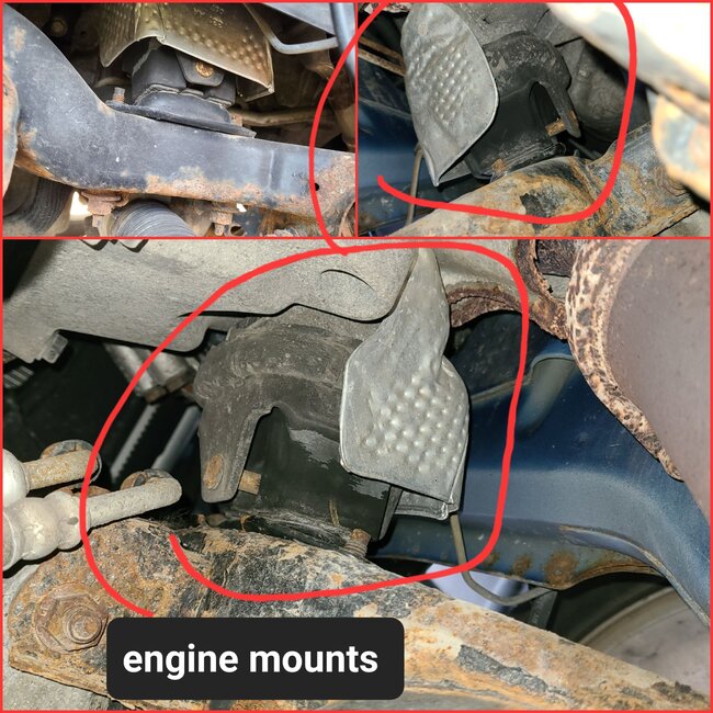 Engine Mounts. another area known for popping while driving. after a visual inspection they look slanted and not straight up. They have a heat shield sleeve wrapped around the majority of it so it's difficult to find any cracks. i am going to rule them out tonight by placing a flat head screwdriver on it while the engine is running to check vibrations. these could have been damaged when the engine cradle fell violently.