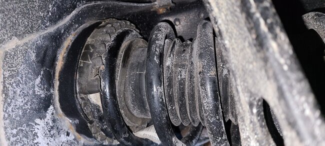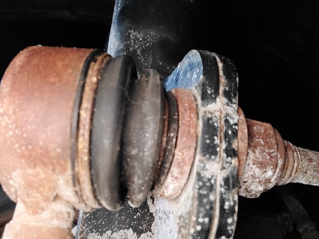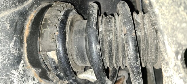 strut top mount looks damaged and that's a better picture of the sway bar boots. in my attempt to change the outer tie rod i noticed that the inner tie rod might be broken. i am getting a lot of play so i will pull the boot and inspect that inner tie rod.