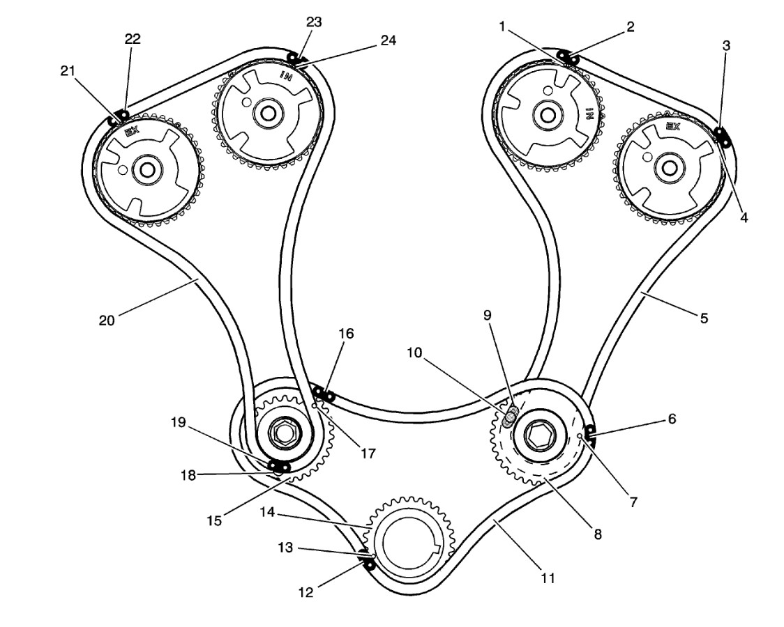 P0017 Exhaust Camshaft Position Not Plausible Bank 1 is commonly a bad cam phaser. In the image that is the EX cam on the left of the image as you look at the front of the engine.