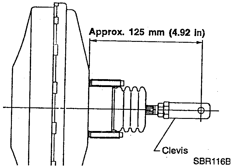 1. Before fitting booster, temporarily adjust clevis to dimension shown. (Does not apply to models with ABS).