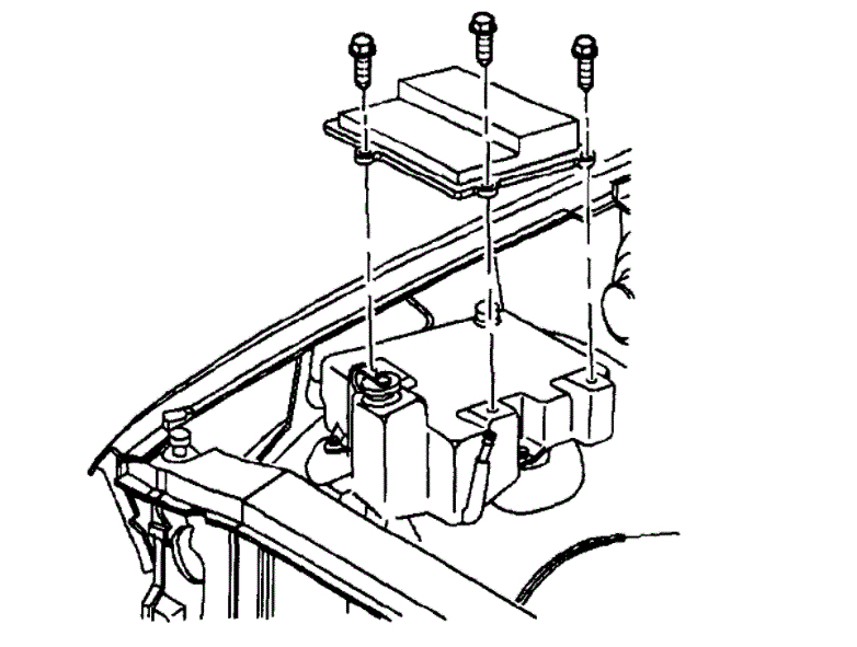3. Remove the mounting hardware. Remove the VCM from the engine compartment.