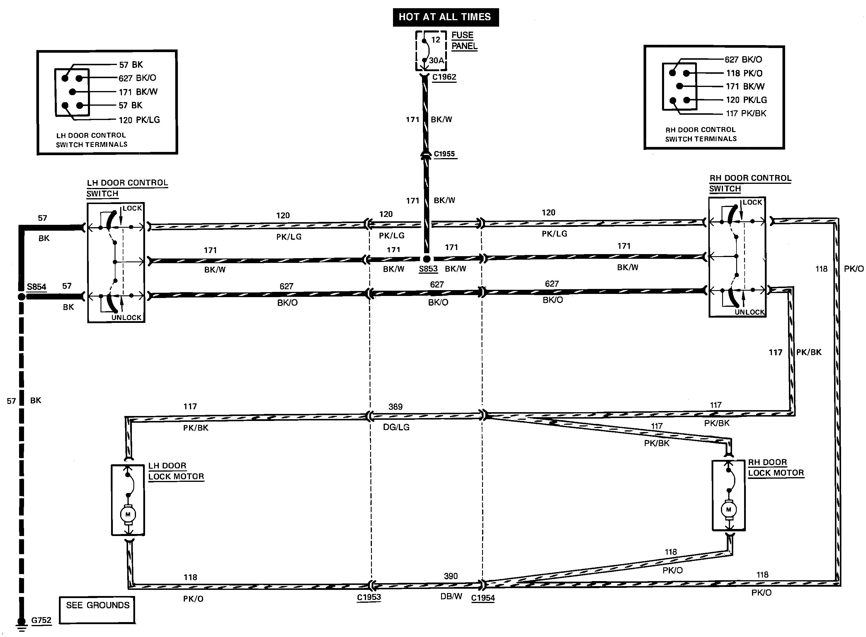 Manufacturers will never rely on the painted door hinge pins to make a reliable ground, so that last ground wire goes through the tube between the hinges, then is bolted to the body inside the cabin, never in the door itself. That last ground wire is a common failure when it frays and breaks, but the symptom would be the entire system is dead, both lock and unlock, from all the switches.