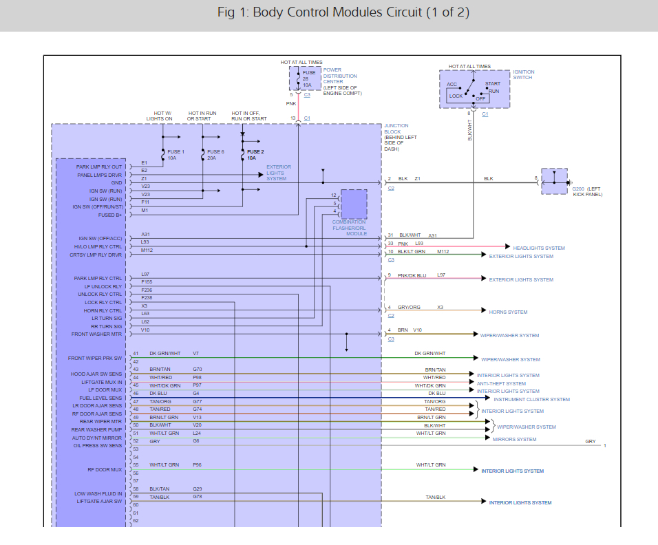 Here are the BCM wiring diagrams so you can see which wires to test for power and ground. If the fuses are okay (test with ignition on) I have left the location and instructions on how to change out the BCM, you can get a preprogrammed unit by searching Google or Ebay. Check out the images (below). Please let us know what you find. We are interested to see what it is.