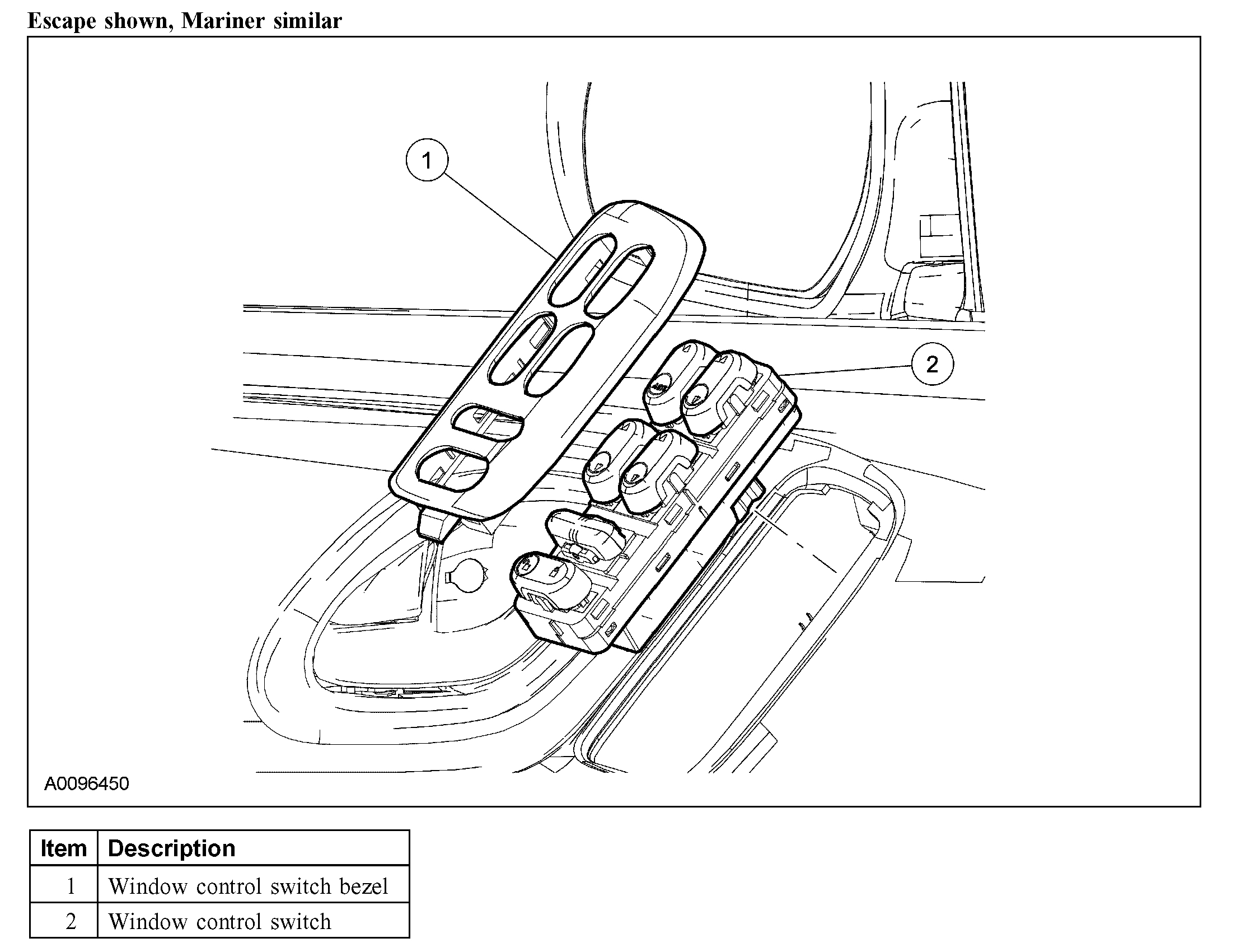 2. On Mariner vehicles, remove the 3 screws and the front door trim panel arm rest.