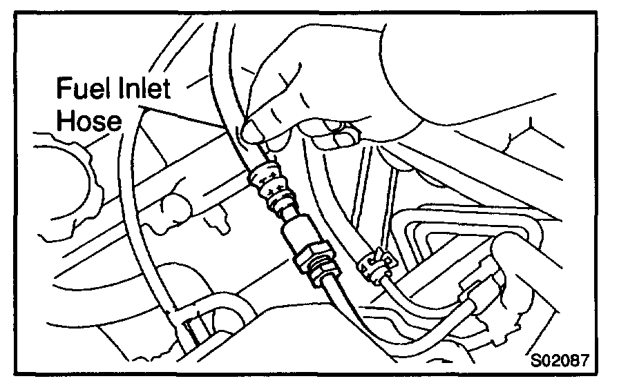 f. Check that there is pressure in the fuel inlet hose from the fuel filter.