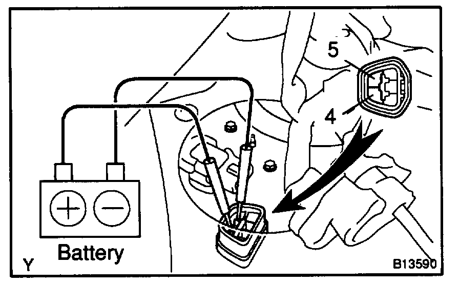 e. If you have no TOYOTA hand-held tester, connect the positive (+) and negative (-) leads from the battery to the fuel pump connector.