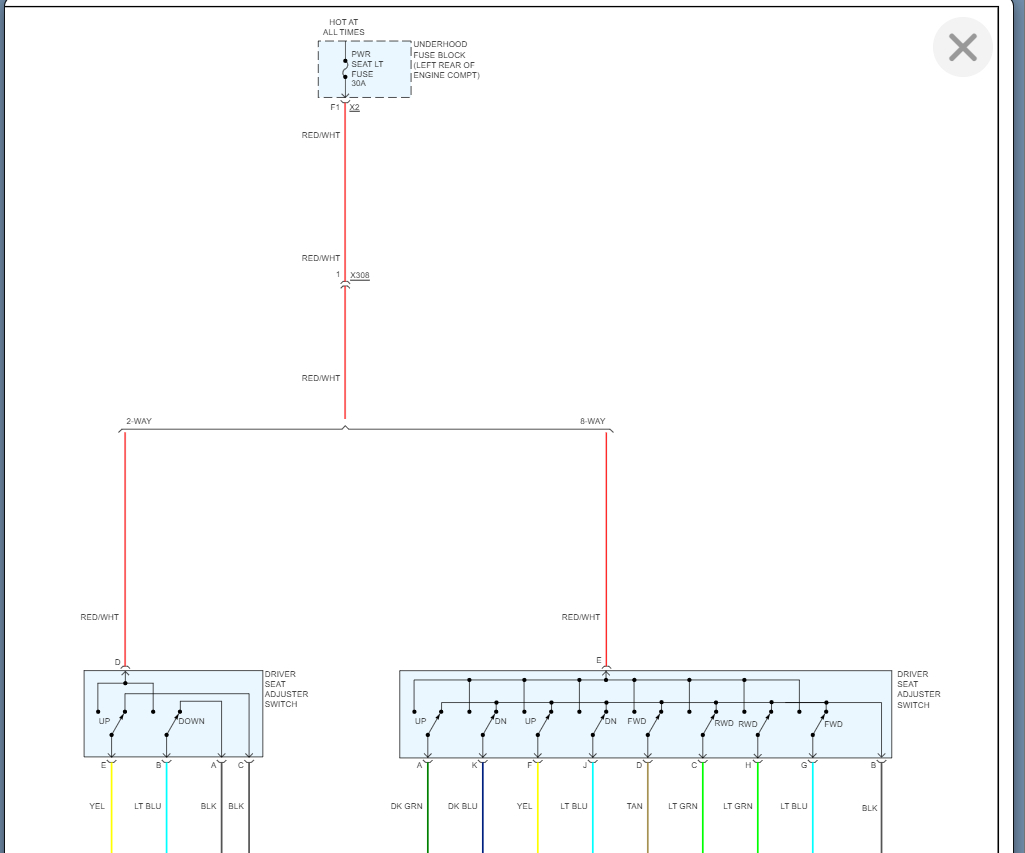 Please see the wiring diagram below. Let me know what questions you have but we need to see what the voltage is on the down circuit when you are not pressing the button, but the seat is moving.