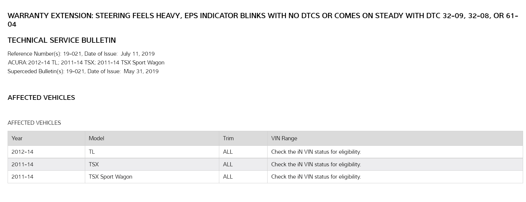 It says they are extending the warranty for the Electronic Power Steering control unit 15 years from purchase date.