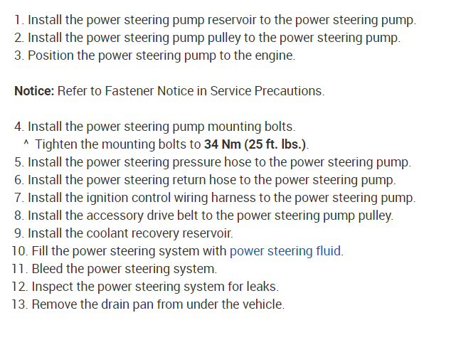 Vehicle Steering and Suspension Steering Power Steering Power Steering Pump Service and Repair Procedures Power Steering Pump Replacement