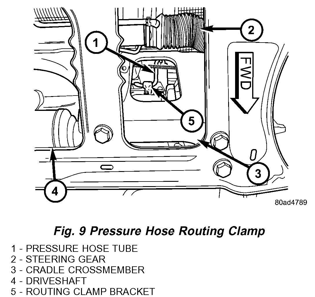 NOTE: Before installing power steering pressure hose on power steering pump, inspect the O-ring on the power steering pressure hose for damage and replace if required.