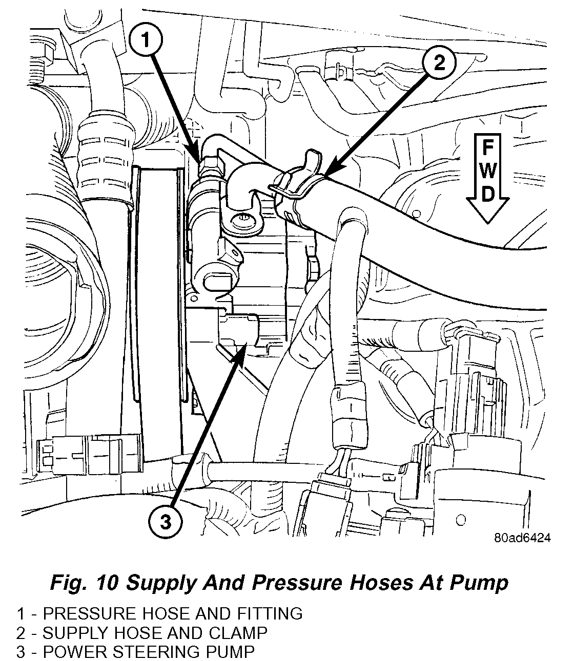 8. Using a siphon pump, remove as much power steering fluid as possible from the power 9. Disconnect the pressure hose from the pump.