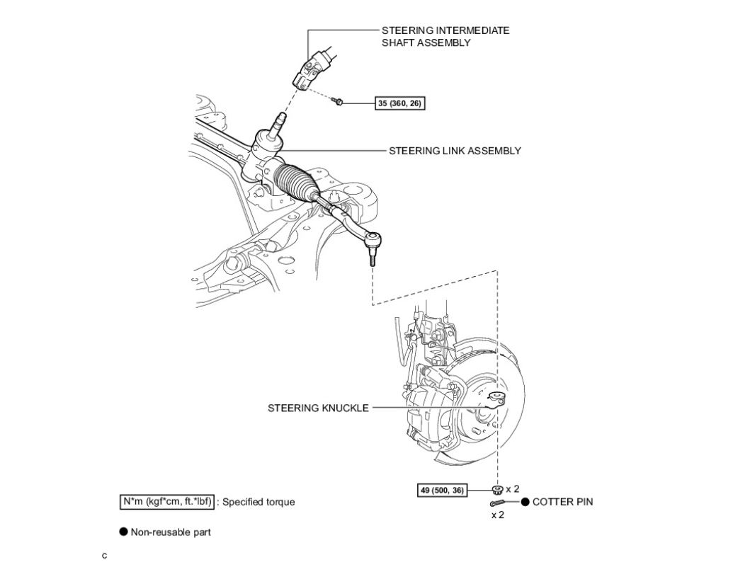 When disconnecting the steering intermediate shaft assembly and the pinion shaft of the steering gear assembly, be sure to place matchmarks before servicing.