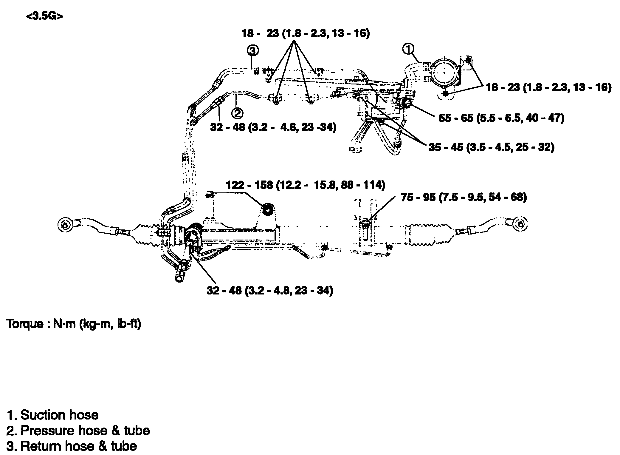 4) Disconnect the pressure tube from the steering gear box, and then disconnect the pressure hose and the tube.