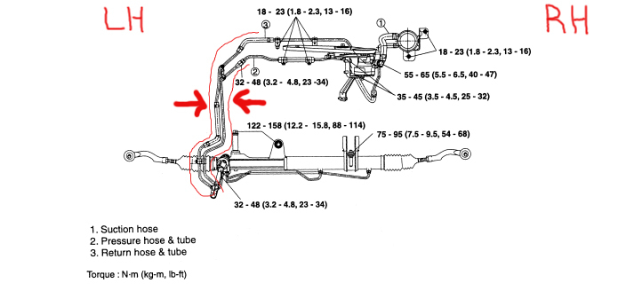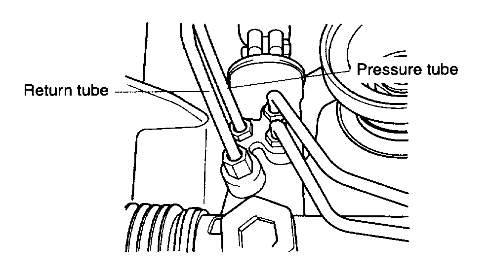 4) Disconnect the return tube from the steering gear box, and then disconnect the return hose and the tube.