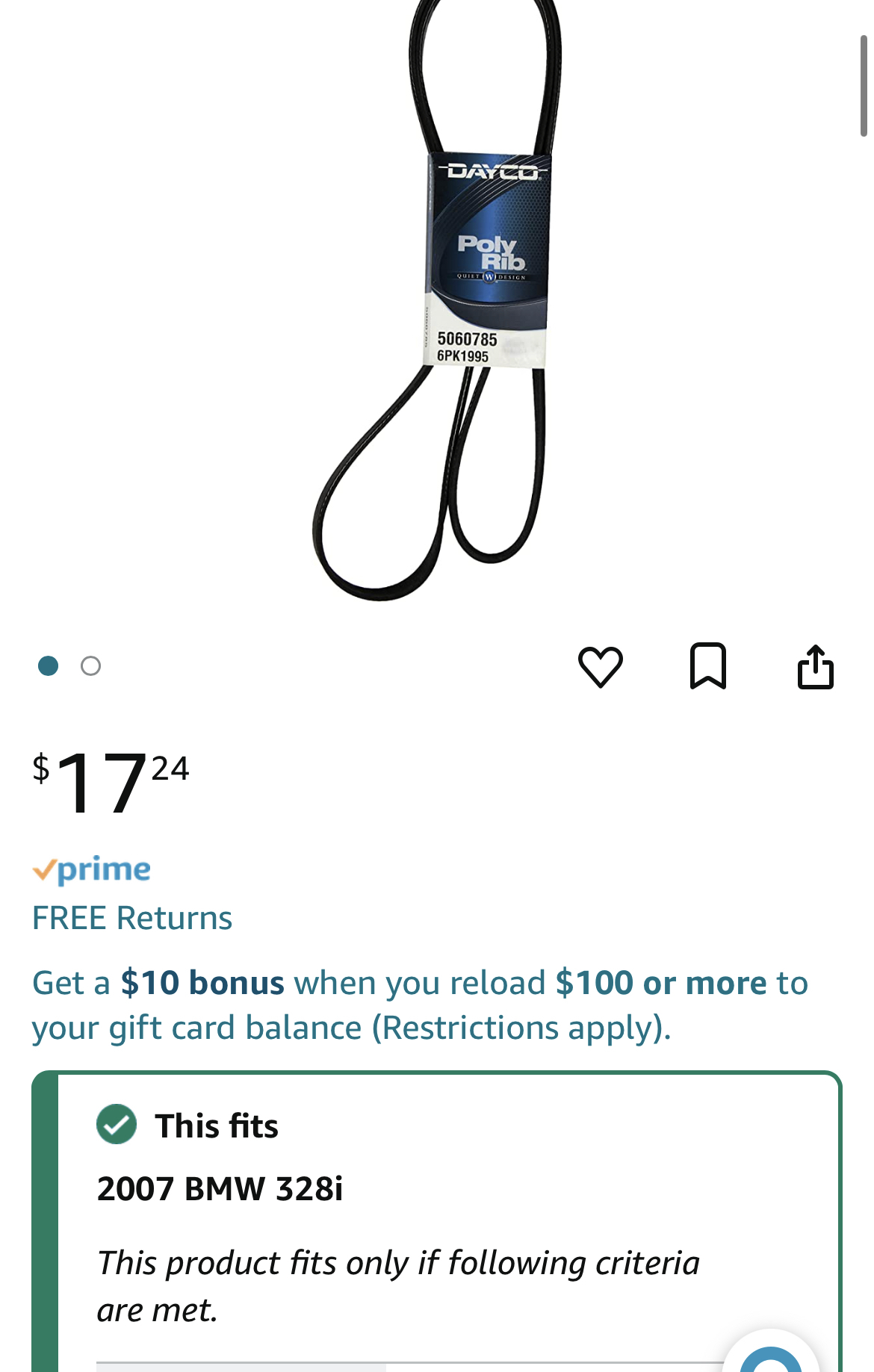 Dayco 5060785 Serpentine Belt , Black https://a.co/d/dZVrAdi