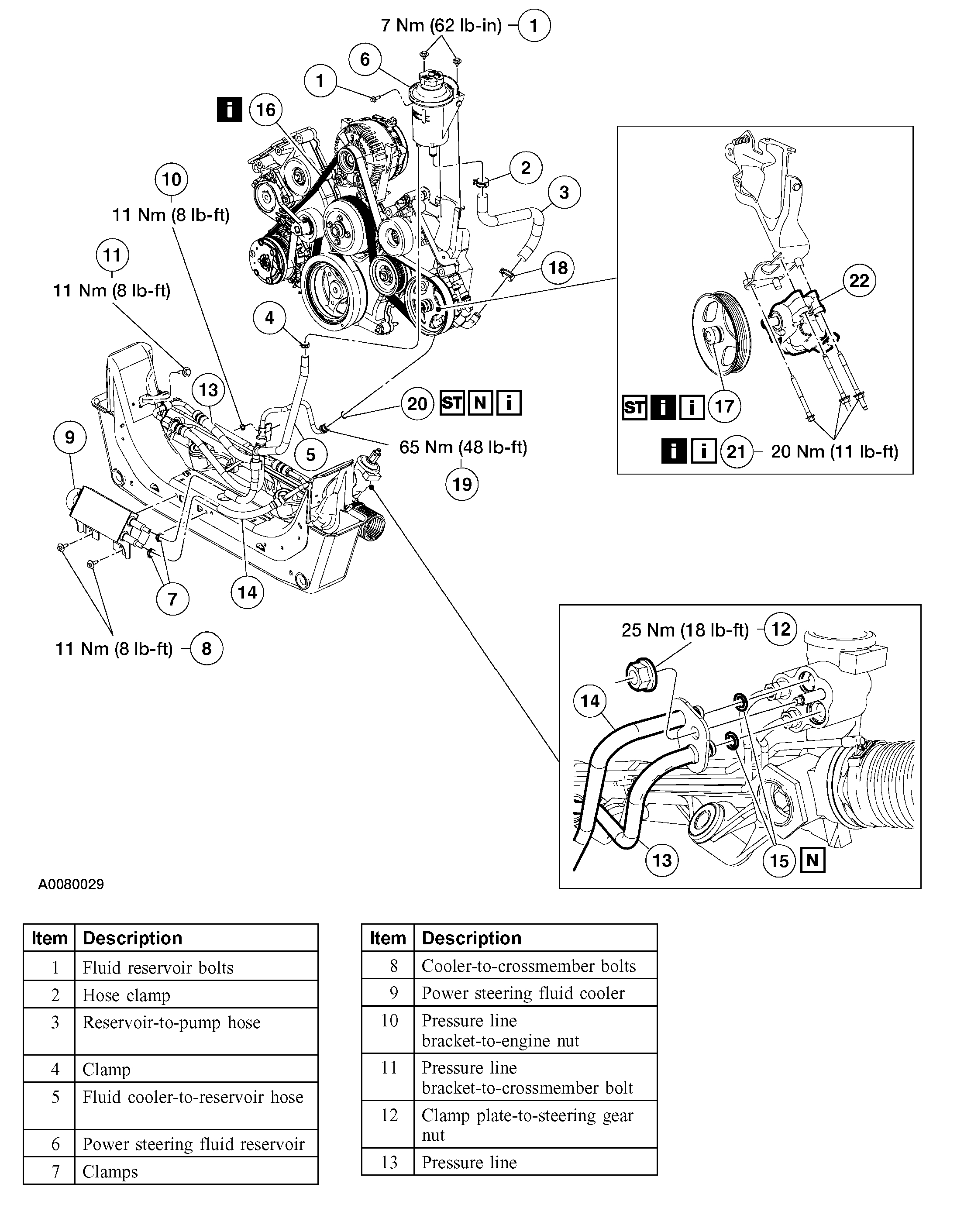 12. CAUTION: Do not hold the steering wheel against the stops for more than 3 to 5 seconds at a time. Damage to the power steering pump can occur.