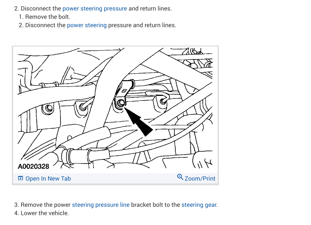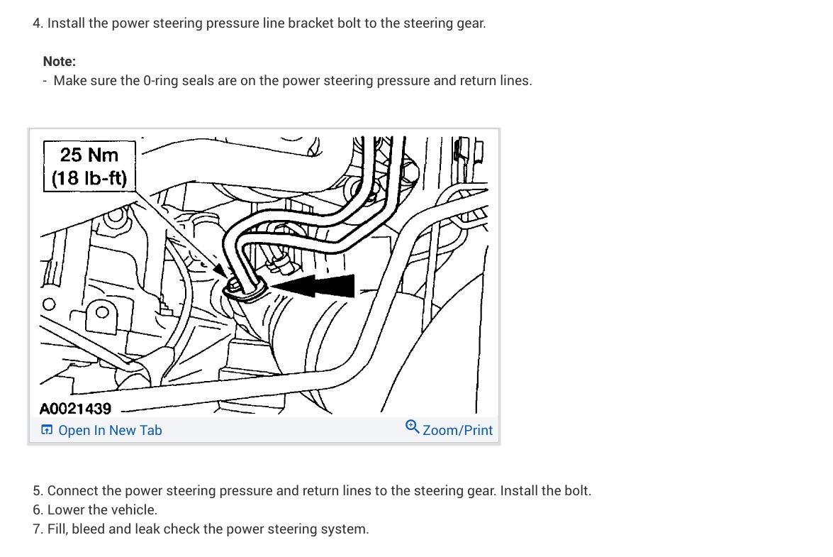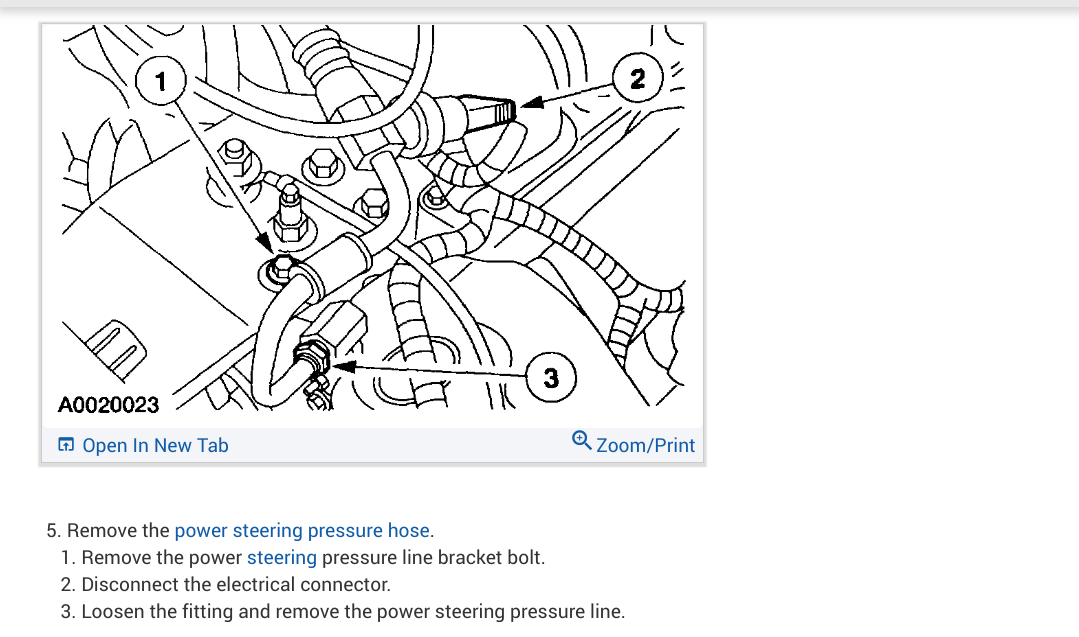 The diagrams I sent earlier are the step by step instructions from the vehicle manufacturer for the high pressure power steering hose replacement for your vehicle. They just happen to have pictures to help you understand what they are explaining. Please keep us informed on how everything turns out.
