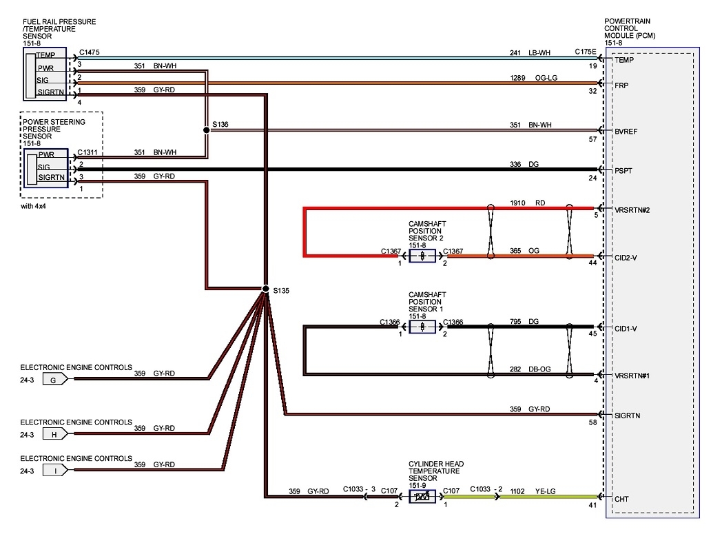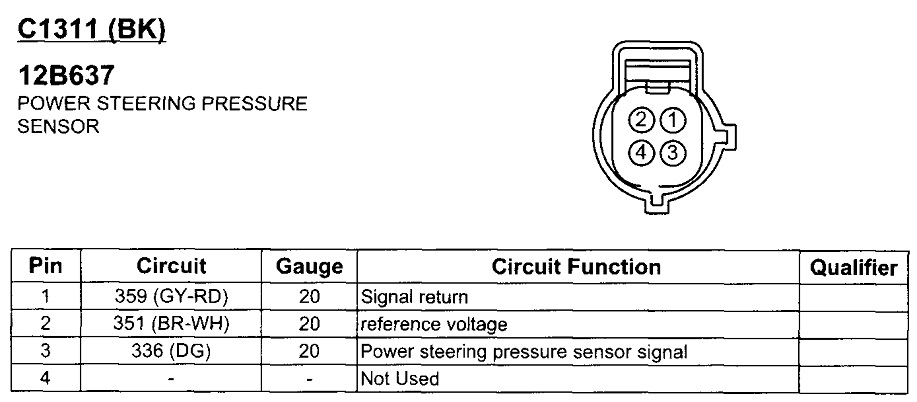 I'm showing a power steering pressure sensor (PSPS) on the vehicle it will have a 4-pin connector but only three of the pins are used.