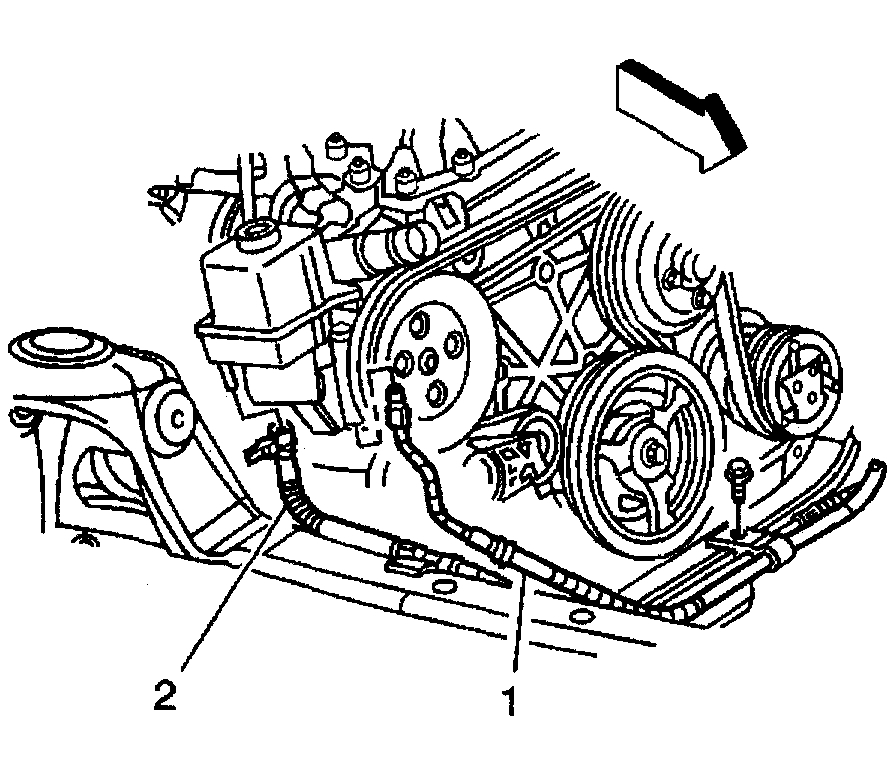 4. Install the power steering cooler hose (2) to the power steering pump.