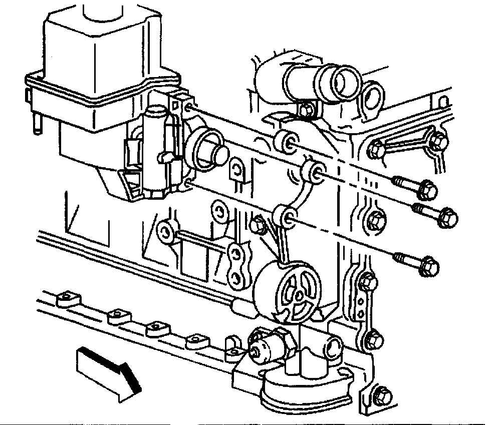 8. Remove the power steering pump mounting bolts.
