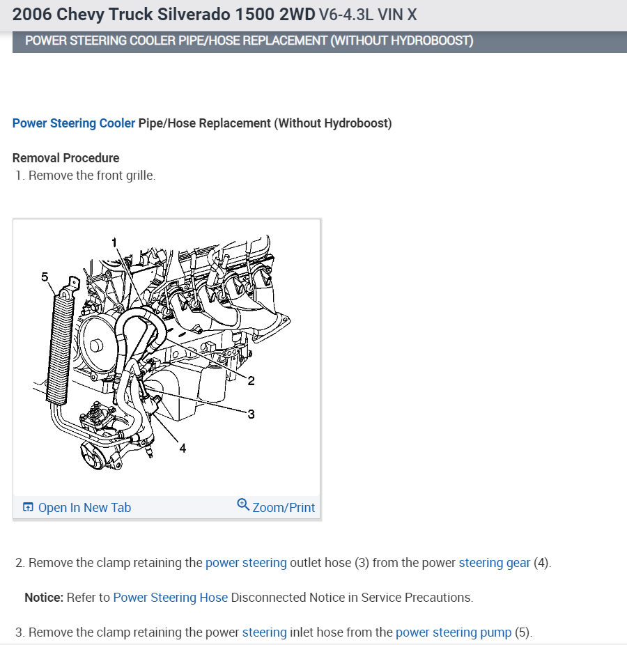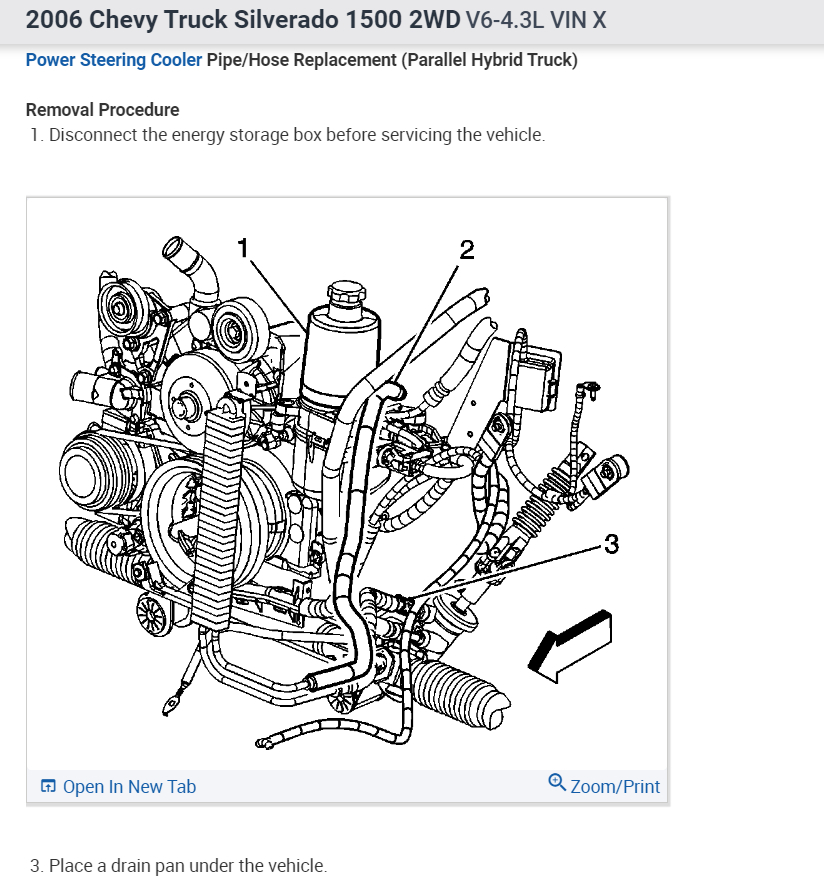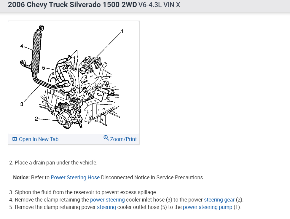 I bought the truck listed above standard cab 1500 WT, from a guy and it is a Frankenstein of wrong and missing parts. The power steering pump is the wrong one and it is missing the return hose. I need info on power steering pump replacement and diagram of where the hoses lead to from the power steering pump. What part does the other end of the return hose connect to and photo of the parts location. I have been searching and see no info for the 4.3 and my setup.