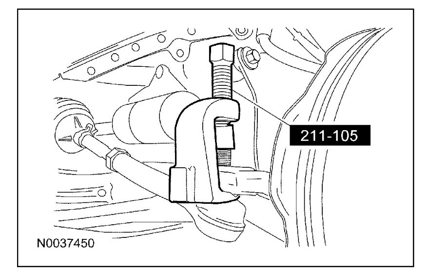 11. CAUTION: Do not use a hammer to separate the outer tie-rod end from the wheel knuckle or damage to the wheel knuckle may result.