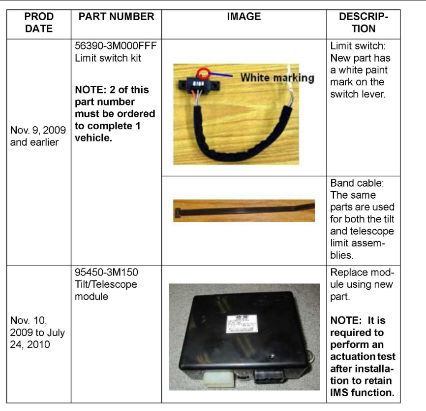 (UPDATE) STEERING WHEEL POWER TILT & TELESCOPE LIMIT SWITCH AND MODULE REPLACEMENT