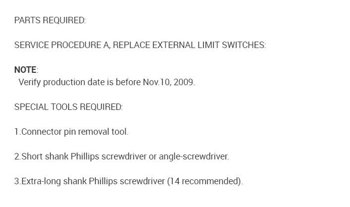 Use Service Procedure A (for vehicles produced before November 10, 2009) to replace external limit switches.