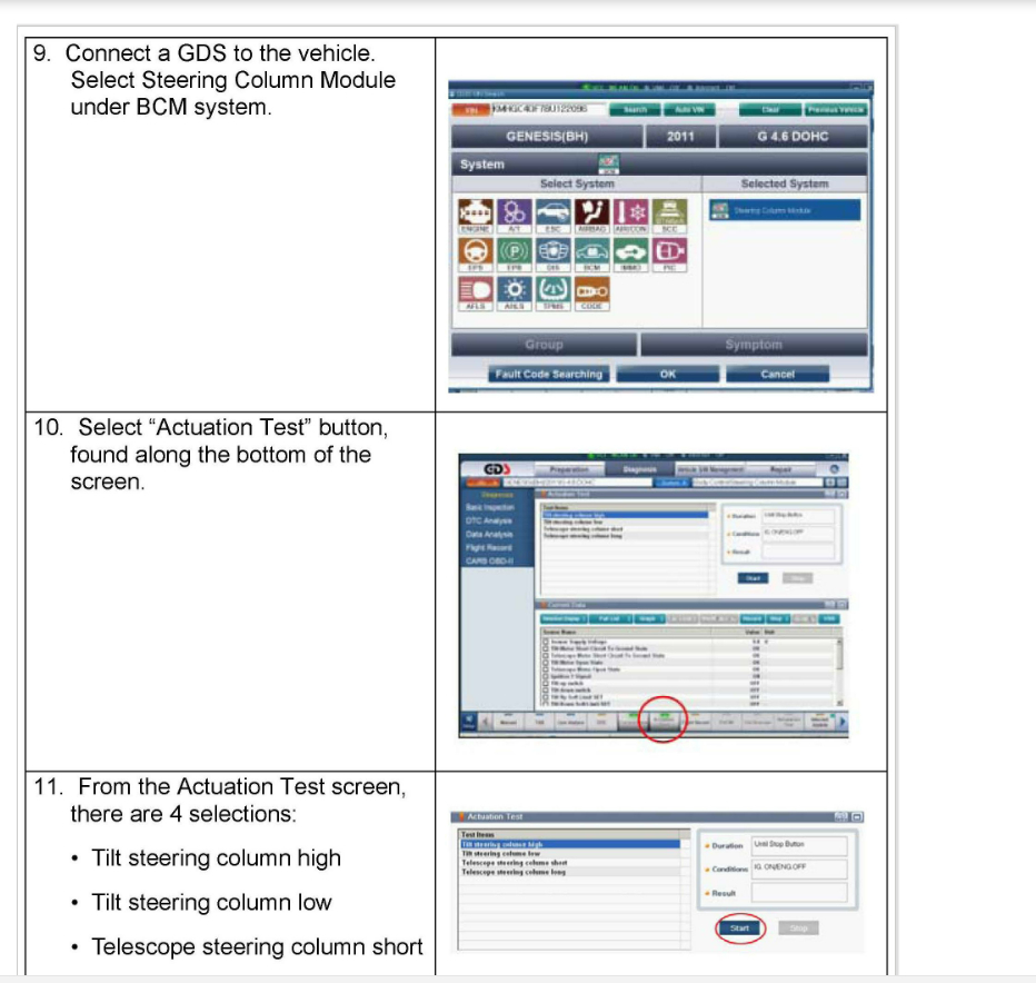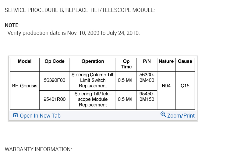 ^ Model - 2009-2011 (BH) Genesis W/ Power Steering Tilt/Telescope Column
