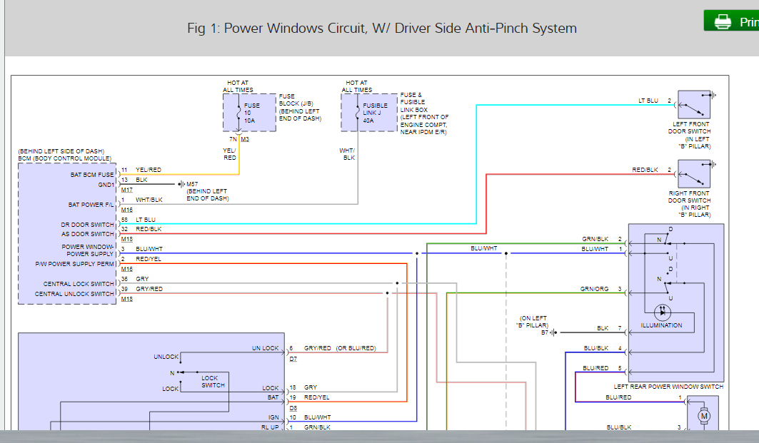 Hi, my power windows and door lock not working. Can you tell me which fuse to check for that? I can lock the door using remote fob only. Thanks