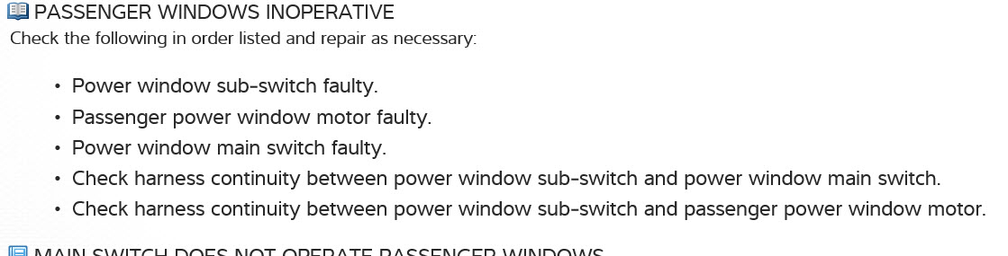 see pictures for what to check, then check to see if power is going to other windows when you push main switch if it is it may be motors or the switches.