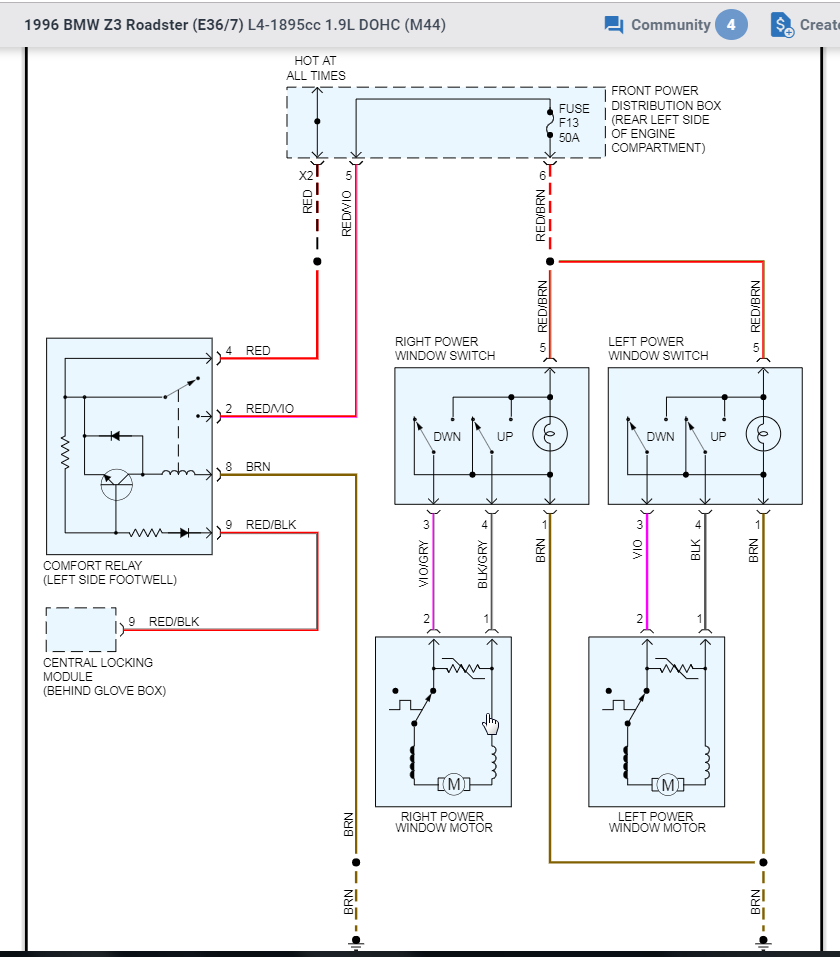 Hi kasekenny1, OMG. It worked! Replaced the #13 fuse and the windows work now. Thank you so very much. i had figured out it was probably #13 from my fuse box saying "lift window" but i wanted to be sure. Thank you so much! I'm so happy. Now i can take my Z3 with my dog for a ride to the park! Carolyn