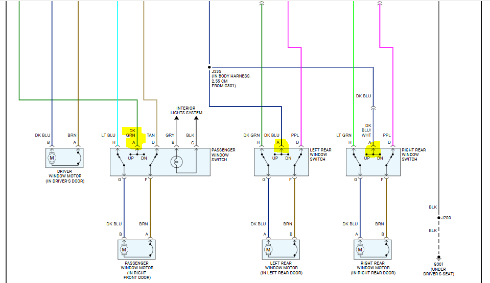 The issue is with the front passenger and both back windows. My driver side window has not worked since I got it and was told it was a motor issue.