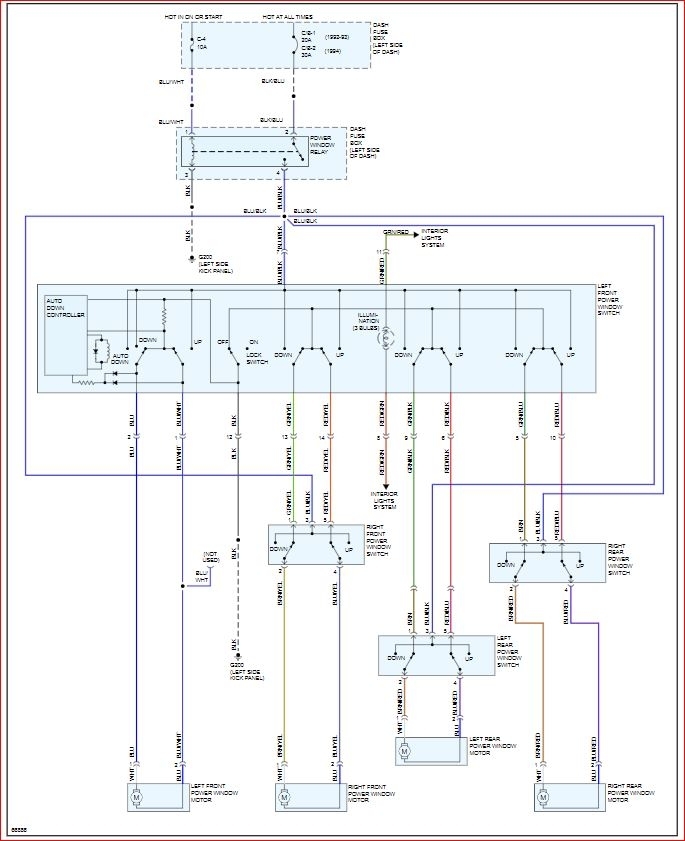 I attached a copy of the wiring diagram for the windows and the operation. It sounds like they don't work from any switch. If that is the case, all these window switch are grounded through the drivers window switch. So most likely this switch has failed. I would suggest replacing this and then retesting. You can follow the wiring diagram and try to bypass the switch and see if you get operation back if you would like.
