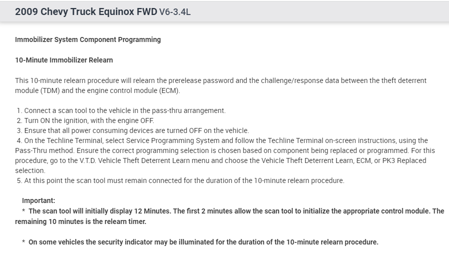 I was having some sporadic no start conditions, so I had the car towed to a Chevrolet dealership. They diagnosed the problem as the PCM being faulty. I ordered a programmed PCM from flagship one and I can't get the key relearn to work with this PCM. For some reason the security light does not turn on at all. I do get a message that says "service theft deterrent system". The car won't crank at all with the new PCM. I have tried this process about 4 times now, with the last time leaving the battery unplugged for about 4 hours to make sure that wasn't an issue. The car will still crank and start with the old PCM. I'm not sure if I'm overlooking something or if the refurbished PCM is somehow faulty.