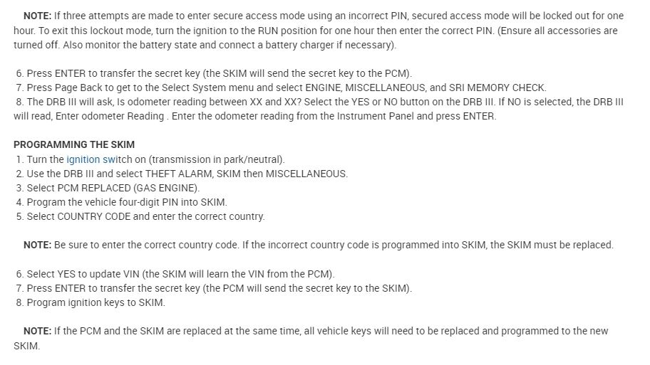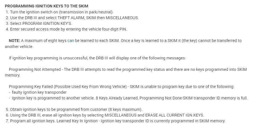Was given the car listed above from my neighbor because he had lost the keys.i purchased a used ignition and key from wreckers.Bought a new transponder key and then went to Chrysler and was given the security code to reprogram key.Purchased a xtool key re-programmer. When it says to enter security code I input it in xtool and it comes up as wrong security code.i tried different codes and they didn’t work either.I phoned another Chrysler shop and they also gave me the same security code as first dealership did.Do I have to reset the alarm or ECU?Thanks for any info that I can try.I live out of town and will pay a fortune for tow truck to bring car into dealership.thanks again.