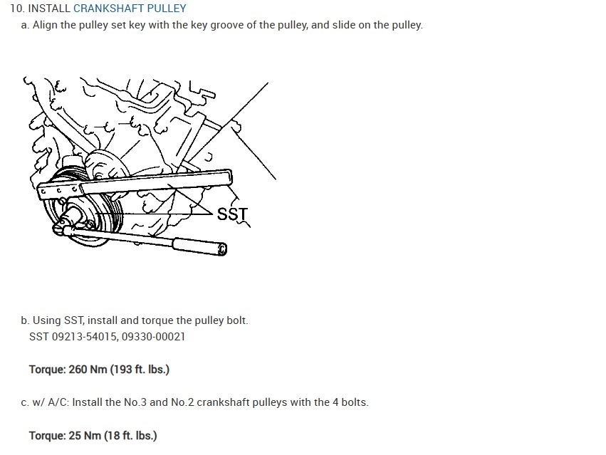Do you need the instructions on setting the timing, or just the ignition timing spec for the crank pulley? the spec with a timing light is 3-7 degrees BTDC @ idle. The timing mark on the crank pulley should show 15-5-0 for degrees on the timing cover and then the notch on the crank pulley needs to at the posted spec *Note with certain pins jumped out at the Data Link Connector (which I'll post a picture of).