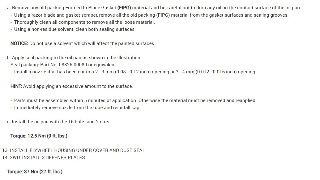 The 13th and 14th diagrams are for the oil pan and list the oil pan installation before removing the old gasket material, so take that into note.